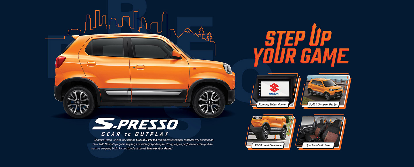Karakteristik S-Presso sesuai dengan kebutuhan mobilitas anak-anak muda atau keluarga muda saat ini. Dimensi yang kompak dan ground clearance yang tinggi membuat S-Presso mampu dengan baik melewati jalan-jalan yang sempit, padat, maupun bergelombang. Meski kompak, kabin dan bagasi S-Presso terasa lega dan bisa menampung banyak barang bawaan. Selain itu, S-Presso juga memiliki banyak fitur sehingga membuat berkendara semakin praktis.